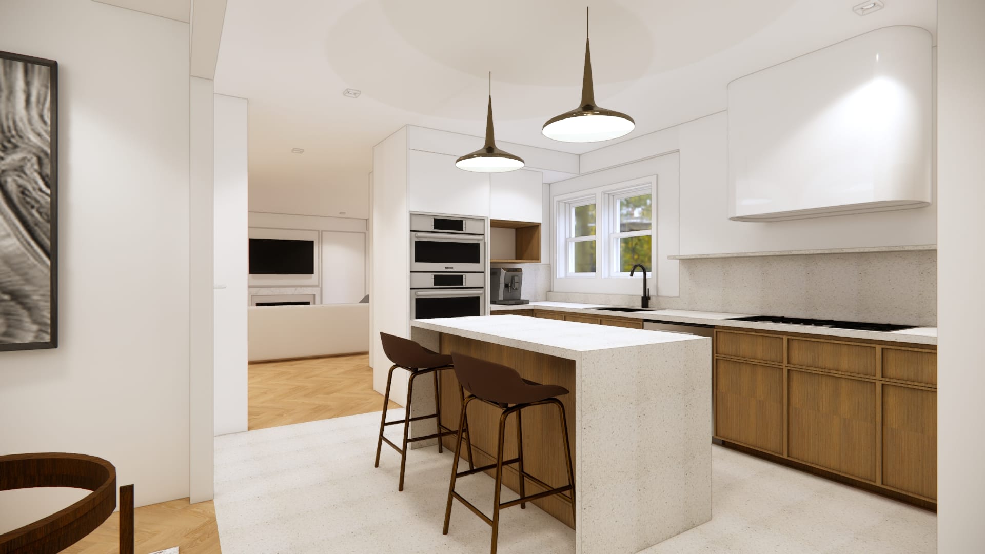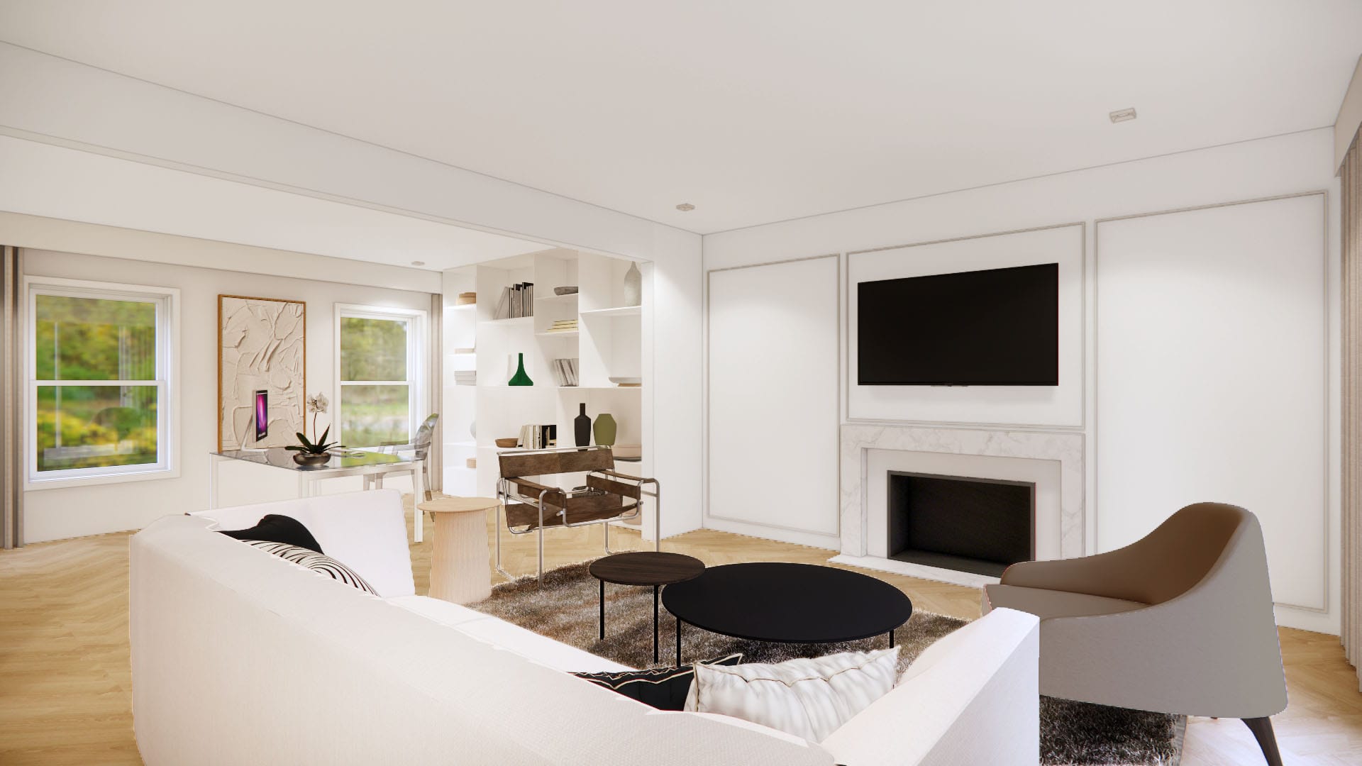 The design embraces the principles of simplicity, functionality, and clarity, creating a serene and uncluttered living environment. Clean lines, neutral color palettes, and natural materials such as wood and stone establish a calm, timeless atmosphere. Furniture pieces are chosen for their minimalist form and multifunctional use, while open layouts and strategic lighting maximize spatial flow and natural light. Accents in black or warm earth tones add subtle contrast, and textures are layered to create depth without visual noise. The result is a harmonious space that supports both everyday living and quiet contemplation—elegant in its restraint and highly livable in its form.